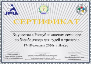2020 jıl 18 fevral’ kúni Oraynıń Nókis filialında dzyudo boyınsha oqıw seminar hám uqıp darsi ótkerildi.
