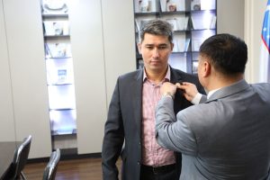 Ushırasıw sońında Qaraqalpaqstan Respublikası Jaslar siyasatı hám sport ministri v. v. b. Allanazarov Adilbek Rustamovichqa instituttıń logotipi túsirilgen arnawlı nıshanı saltanatli túrde tapsırildi.