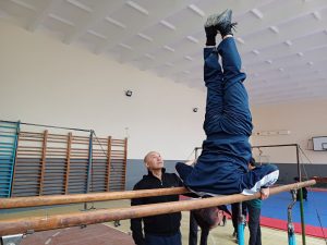 Jismoniy tarbiya va sport bo‘yicha mutaxassislarni qayta tayyorlash va malakasini oshirish instituti Nukus filialida joriy yilning 27-mart kuni mart oyida malakalarini oshirayotgan Jismoniy tarbiya fani o‘qituvchisi yo‘nalishi 2-guruh tinglovchilari uchun “Gimnastikani o‘qitish uslubiyati” moduli bo‘yicha A.Eshbaev tomonidan Nukus davlat pedagogika instituti sport zalida 3+1 tizimi asosida amaliy mashgʻulot tashkil etildi.