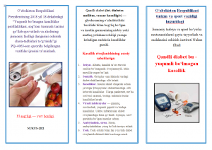 O‘zbekiston Respublikasi Prezidentining 2018 yil-18 dekabrdagi “Yuqumli bo‘lmagan kasalliklar profilaktikasi, sog‘lom turmush tarzini qo‘llab-quvvatlash va aholining jismoniy faolligi darajasini oshirish chora-tadbirlari to‘g‘risida”gi PQ–4063-son qarorida belgilangan vazifalar ijrosini taʼminlash maqsadida 2021 yil 15 oktyabr kuni Nukus filalida “Sport fanlari” kafedrasi o‘qituvchisi Orazbayeva Navbahor tomonidan “Sport turlari bo‘yicha trener o‘qituvchilar” yo‘nalishi tinglovchilariga “Qandli diabet bu -yuqumli bo‘lmagan kasallik” mavzusidagi seminar o‘tkazildi. Seminarda yuqumli bo‘lmagan “Qandli diabet” kasalligining kelib chiqishi va uning oldini olish haqida keng tushunchalar berildi. Kasallik rivojlanishining asosiy sabablari, belgilari va alomatlari bo‘yicha bukletlar tayyorlanib tinglovchilarga tarqatildi.