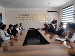 2023-yil 7-aprel kuni Jismoniy tarbiya va sport boʻyicha mutaxassislarni qayta tayyorlash va malakasini oshirish instituti Nukus filiali “Sport psixologiyasi, ijtimoiy-tabiiy fanlar” kafedrasi professor-oʻqituvchilari tomonidan 9-aprel Qoraqalpogʻiston Respublikasi Konstitutsiyasi qabul qilinganligining 30 yillik bayrami munosabati bilan “IQBOL, BAXTIM – KONSTITUTSIYAM!” mavzusida davra suhbati oʻtkazildi. Davra suhbatini kafedra mudiri N.A.Tleubergenova boshlab berdi. Davra suhbatiga Ajiniyoz nomidagi Nukus davlat pedagogika instituti “Milliy gʻoya, ma’naviyat asoslari va huquq ta’limi” kafedrasi mudiri, dotsent E.Tileuov va filialning yurist-maslahatchisi K.B.Seytmuratovlar taklif qilindi.