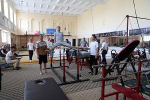 Joriy yilning 28-iyun kuni Nukus filiali “Jismoniy tarbiya, sport nazariyasi va uslubiyati” kafedrasi o‘qituvchisi D.Karimov tomonidan Nukus davlat pedagogika instituti sport zalida Jismoniy tarbiya o‘qituvchisi yo‘nalishi 4-guruh tinglovchilari uchun “Gimnastikani o‘qitish uslubiyati” modulidan 3+1 tizimi asosida amaliy mashg‘ulot tashkil qilindi.
