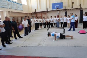 Joriy yilning 25-iyun kuni Nukus filiali “Jismoniy tarbiya, sport nazariyasi va uslubiyati” kafedrasi o‘qituvchisi D.Karimov tomonidan Nukus shahar 15-sonli Umumiy o‘rta ta’lim maktabida Jismoniy tarbiya o‘qituvchisi yo‘nalishi 2-guruh tinglovchilari uchun “Gimnastikani o‘qitish uslubiyati” modulidan 3+1 tizimi asosida amaliy mashg‘ulot tashkil qilindi.